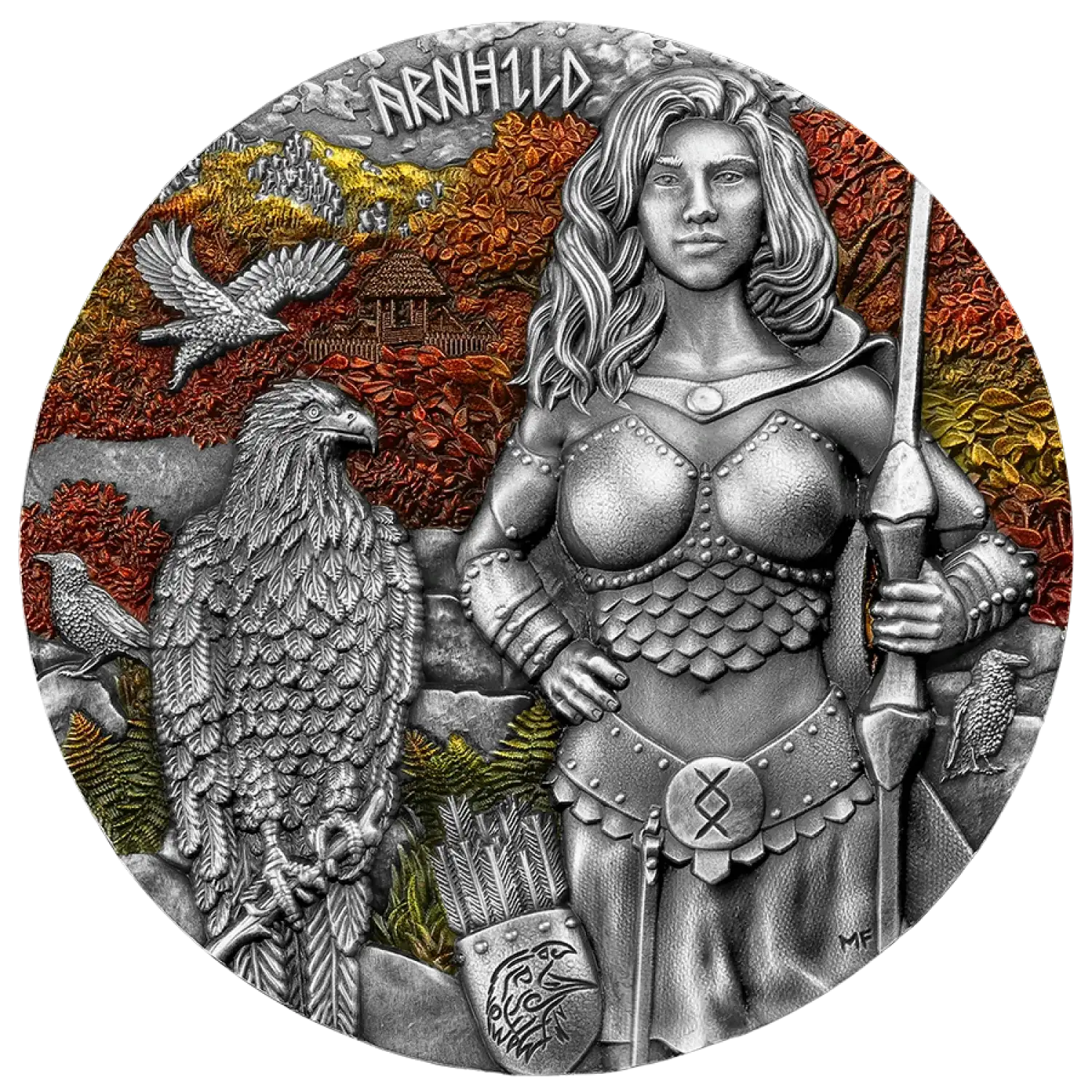 The 2025 2 oz Valkyries - Arnhild Silver Coin is a stunning addition to any silver collection or investment portfolio. Celebrating the legendary Valkyrie Arnhild, this coin not only highlights exquisite craftsmanship but also represents a connection to rich Norse mythology. As a high-relief, intricately detailed piece, it embodies the spirit of bravery and valor that the Valkyries are known for. Each aspect of this coin has been expertly designed to capture both the historical significance and the beauty that silver coins can offer.